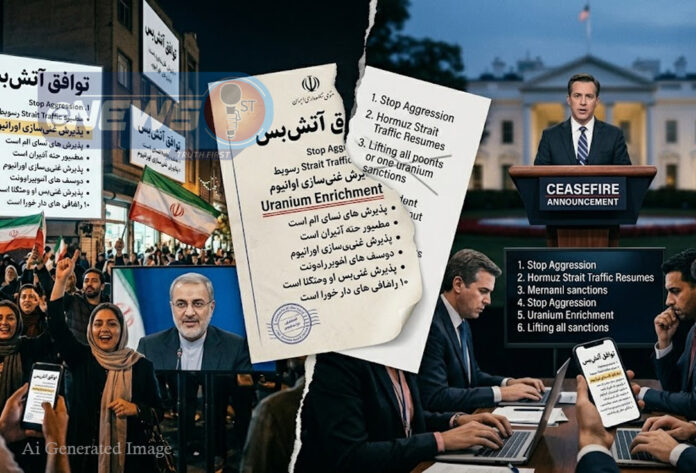 இன்று காலை ஈரான் மற்றும் அமெரிக்கா இடையே போர் நிறுத்தம் அறிவிக்கப்பட்டது. ஈரான் 10 அம்ச திட்டத்தை முன்மொழிந்ததாகவும், அதை டிரம்ப் நிர்வாகம் பரிசீலனை செய்வதாகவும் கூறப்படுகிறது.. இந்த அறிவிப்பால் வளைகுடா பிராந்தியத்தில் நிலவிவரும் பதற்றம் சற்றே தணியும் என எதிர்பார்க்கப்பட்டது. இதற்கிடையே ஈரான் போட்ட கண்டிஷன்களில் ஒரு விஷயம் உலகெங்கும் பலரது கவனத்தை ஈர்த்துள்ளது.