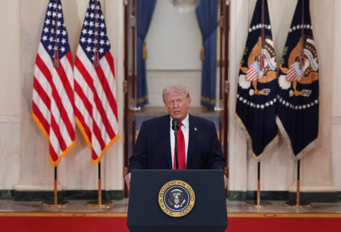ஈரான் மீதான போரில் அமெரிக்க ராணுவம் தனது இலக்குகளை கிட்டத்தட்ட எட்டிவிட்டதாக அமெரிக்க அதிபர் டொனால்ட் டிரம்ப் நேற்று புதன்கிழமை இரவு தொலைக்காட்சியில் ஆற்றிய உரையில் தெரிவித்தார். இருப்பினும், இந்தப் போர் எப்போது முழுமையாக முடிவுக்கு வரும் என்பதற்கான குறிப்பிட்ட காலக்கெடு எதனையும் அவர் வழங்கவில்லை.