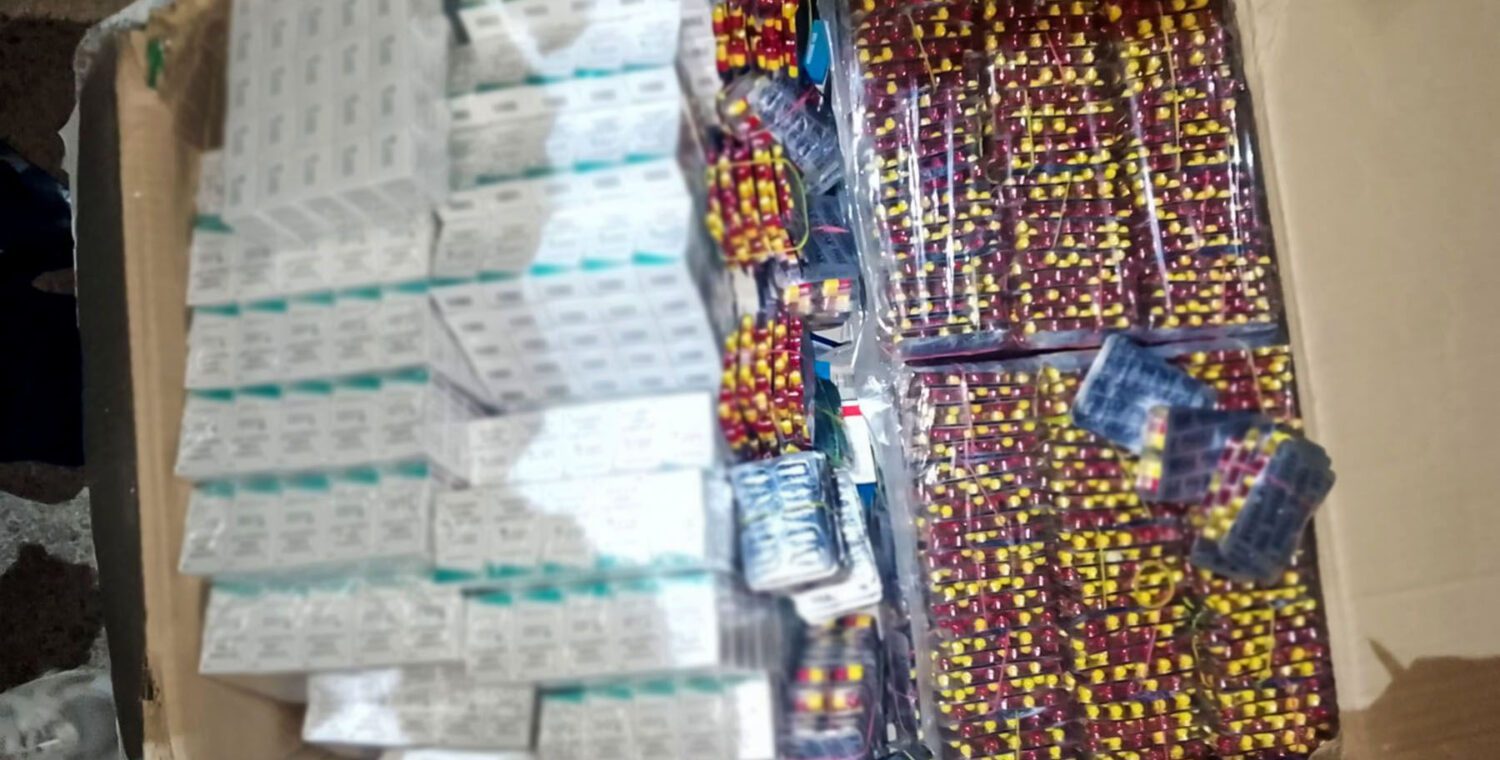 (379) கிலோ கிராமை விட அதிகமான பீடி இலைகள், (6000) வெளிநாட்டு சிகரெட்டுகள், (2,812,00) மருந்து மாத்திரைகள் மற்றும் (1291) மருந்து ஊசிகளுடன் சந்தேக நபர் ஒருவர் கைதுசெய்யப்பட்டுள்ளார்.