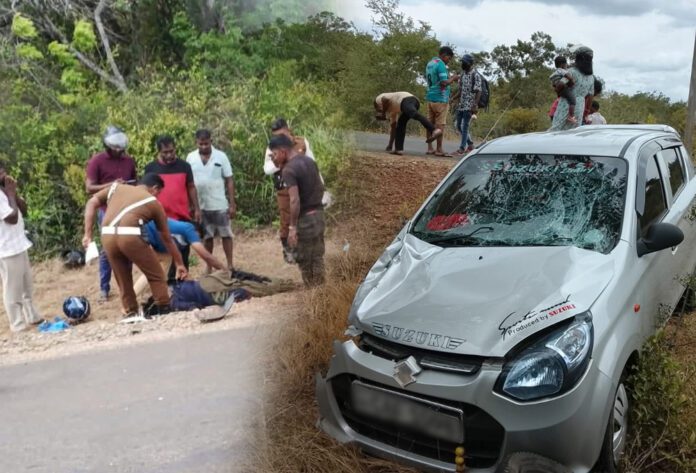 மோட்டார் சைக்கிள் மற்றும் கார் மோதியதில் ஏற்பட்ட விபத்தில், மோட்டார் சைக்கிளில் பயணித்த இயக்கச்சியை சேர்ந்த சிரிகரன் சுபாங்கி 44 வயதுடைய குடுப்ப பெண் சம்பவ இடத்தில் உயிரிழந்துள்ளார்.
