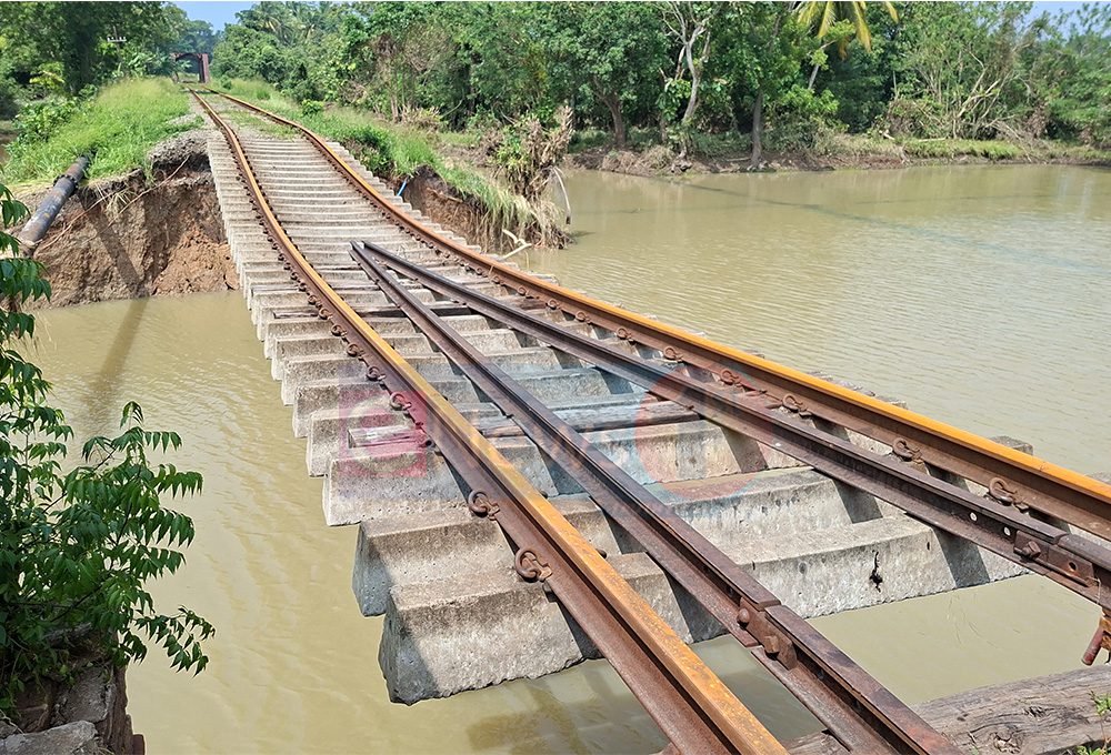 அந்த ரயில் நிலையங்களுக்கு இடையில் உள்ள கடுபிட்டி ஓயாவின் பாலமும் குறித்த வெள்ளத்தினால் கடுமையாக சேதமடைந்துள்ளது.
