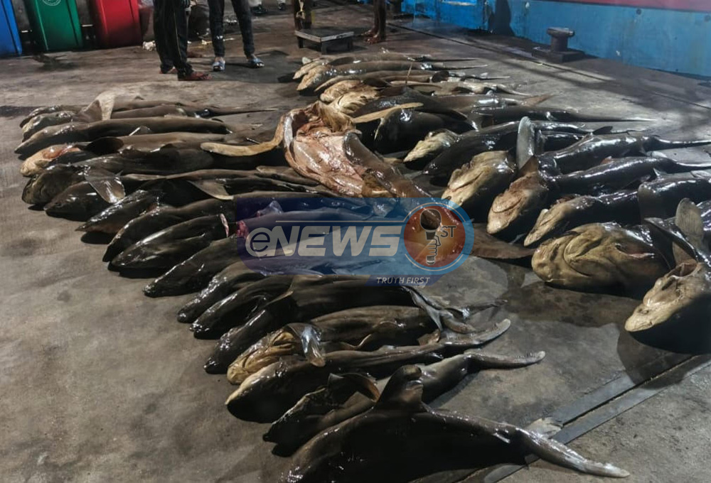 ஆழ்கடலில் பிடிக்கப்பட்டதாகக் கூறப்படும் ‘தோகை இறகு சுறாக்கள்’ (Thresher Sharks/පොල් කොළ මෝරු) ஒரு தொகுதியை பலநாள் படகு ஒன்றின் மூலம் நாட்டிற்கு கொண்டு வந்த 7 மீனவர்கள் கடலோர பாதுகாப்புப் படை அதிகாரிகளினால் கைது செய்யப்பட்டுள்ளனர்.