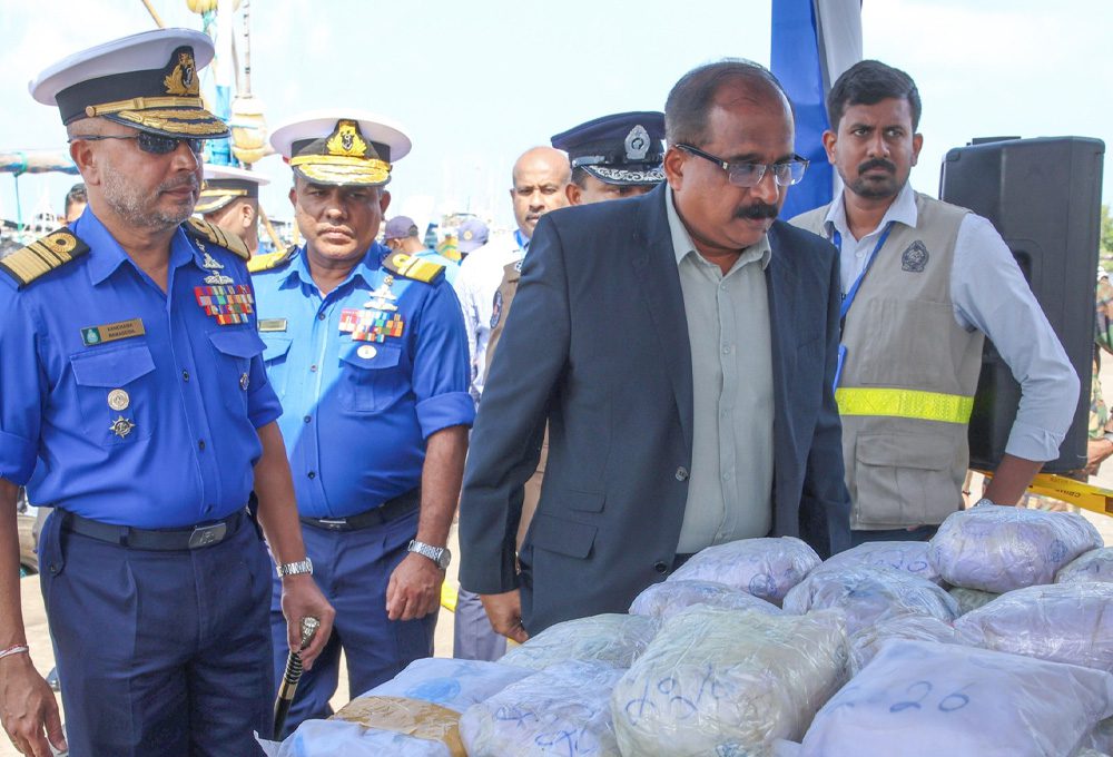 பொலிஸ் போதைப்பொருள் தடுப்புப் பணியகம் நடத்திய சிறப்பு பரிசோதனையின் போது, கடற்படையால் கைப்பற்றப்பட்ட பதினாறு (16) பொதிகளில் ஐஸ் போதைப்பொருள் சுமார் 250 கிலோகிராமை விட அதிகமான தொகை மற்றும் ஹெராயின் சுமார் 85 கிலோகிராமை விட அதிகமான தொகை இருந்தமை உறுதி செய்யப்பட்டதுடன் பாதுகாப்பு பிரதி அமைச்சர் மேஜர் ஜெனரல் அருண ஜயசேகர மற்றும் கடற்படைத் தளபதி வைஸ் அட்மிரல் கான்சன பானகொட ஆகியோர் குறித்த போதைப்பொருட்களை ஆய்வு செய்வதில் பங்கேற்றனர்.
