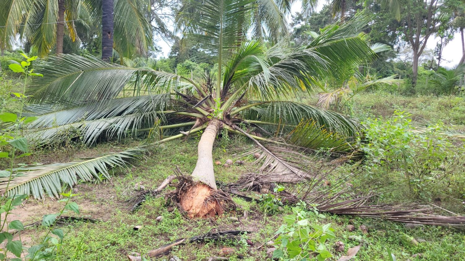 நேற்றிரவு புகுந்த காட்டு யானை 13ற்கு மேற்பட்ட தென்னை மரங்களை அழித்துள்ளது. குறித்த கிராமத்தில் ஒரு மாதத்தில் மாத்திரம் 80ற்கு மேற்பட்ட தென்னைகளை அழித்துள்ளதாக கிராம மக்கள் தெரிவிக்கின்றனர்.