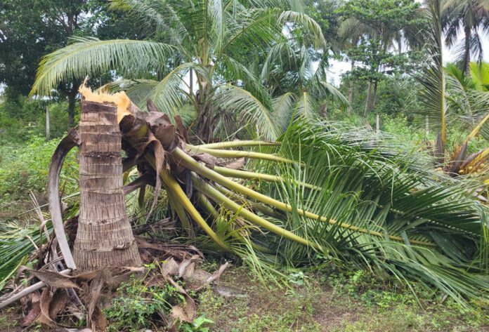 நேற்றிரவு புகுந்த காட்டு யானை 13ற்கு மேற்பட்ட தென்னை மரங்களை அழித்துள்ளது. குறித்த கிராமத்தில் ஒரு மாதத்தில் மாத்திரம் 80ற்கு மேற்பட்ட தென்னைகளை அழித்துள்ளதாக கிராம மக்கள் தெரிவிக்கின்றனர்.