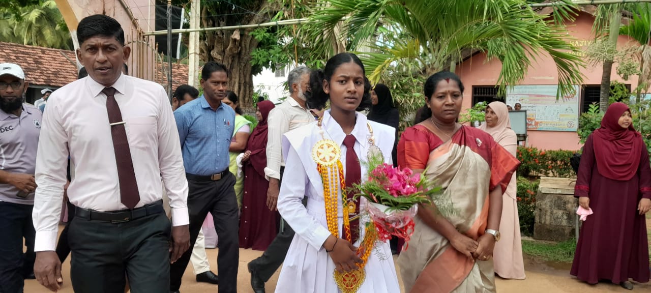 பல சிரமங்களுக்கு மத்தியில் தேசிய போட்டிவரை சென்று கலந்துகொண்டு வெற்றி பெற்று பாடசாலைக்கும், சமூகத்திற்கும் பெருமை சேர்த்த இம் மாணவியை கெளரவப்படுத்தும் நிகழ்வு இன்று (7) பாடசாலையில் இடம்பெற்றமை குறிப்பிடத்தக்கது.