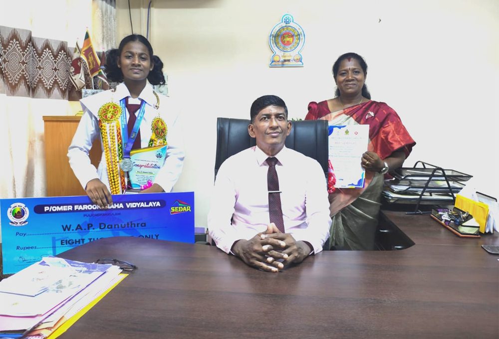 பல சிரமங்களுக்கு மத்தியில் தேசிய போட்டிவரை சென்று கலந்துகொண்டு வெற்றி பெற்று பாடசாலைக்கும், சமூகத்திற்கும் பெருமை சேர்த்த இம் மாணவியை கெளரவப்படுத்தும் நிகழ்வு இன்று (7) பாடசாலையில் இடம்பெற்றமை குறிப்பிடத்தக்கது.