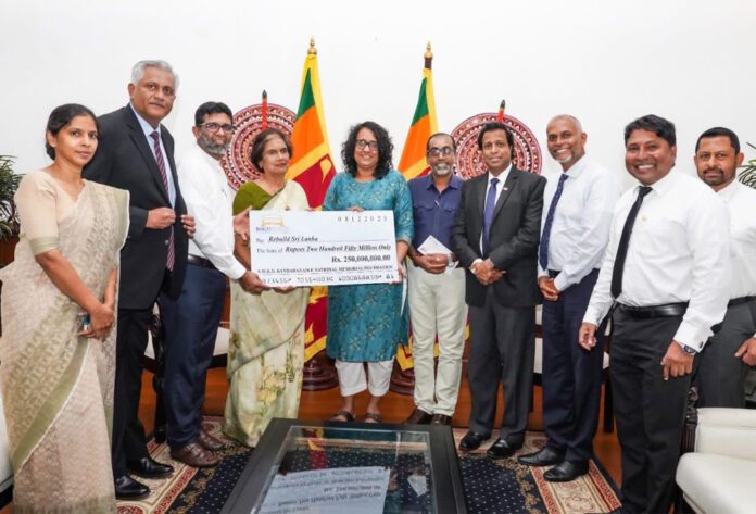 திடீர் அனர்த்த நிலைமையின் பின்னர் நாட்டை வழமை நிலைக்குக் கொண்டு வருவதற்காக பண்டாரநாயக்க ஞாபகார்த்த தேசிய மன்றம் 250 மில்லியன் ரூபா நிதியுதவியை வழங்கியுள்ளது.