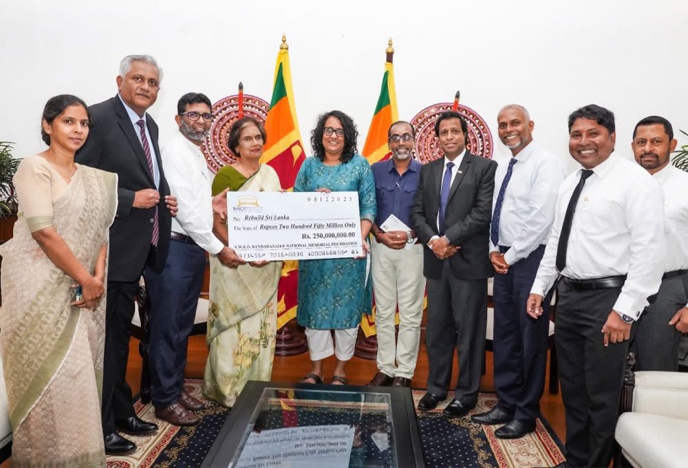 மன்றத்தின் தலைவரும் முன்னாள் ஜனாதிபதியுமான சந்திரிக்கா பண்டாரநாயக்க உட்பட பணிப்பாளர் சபையினால் அதற்குரிய காசோலை நேற்று 2025 டிசம்பர் 08ஆம் திகதி பிரதமர் கலாநிதி ஹரிணி அமரசூரிய அவர்களிடம் பிரதமரின் அலுவலகத்தில் வைத்து கையளிக்கப்பட்டது.