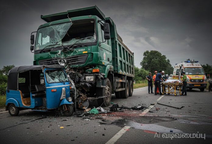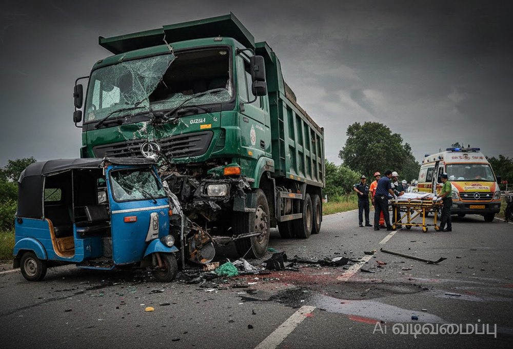 நொறுங்கிய முச்சக்கர வண்டி.. துடிதுடித்த ஓட்டுநர்!