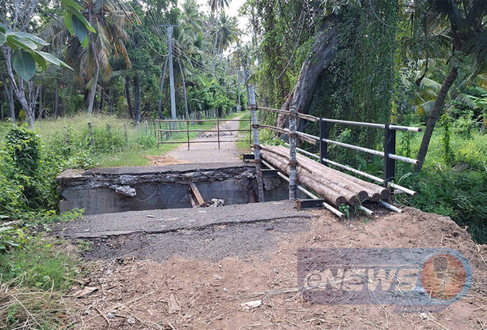 எனவே, பொதுமக்களின் பாதுகாப்பைக் கருத்திற்கொண்டு, இந்த பாலத்தை உடனடியாகப் புனரமைத்துத் தருமாறு பிரதேச மக்கள் மற்றும் சிவில் அமைப்புகள் பொறுப்பு வாய்ந்த அதிகாரிகளிடம் கோரிக்கை விடுத்துள்ளனர்.