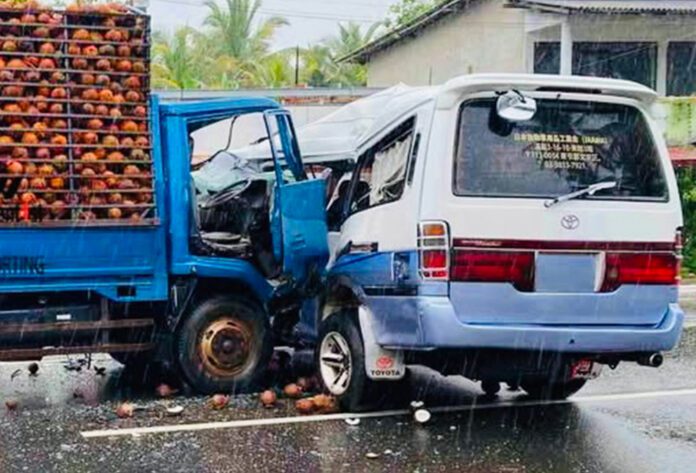 நாட்டில் மிக மோசமான காலநிலை நிலவிவரும் நிலையில் இன்று காலை ஏற்பட்ட விபத்தில், வேன் சாரதி கவனக்குறைவாக வண்டியை செலுத்தியதில் தேங்காய்களை ஏற்றிச் சென்ற லொறியுடன் மோதி இந்த விபத்து ஏற்பட்டுள்ளது.