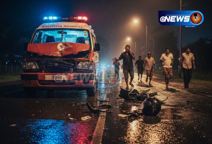 கல்பிட்டி மருத்துவமனைக்குச் சொந்தமான ஆம்புலன்ஸ் வண்டி ஒன்று, புத்தளம் – மெல்லங்குளம் பகுதியில் நேற்று31 ஆம் தேதி இரவு 7.30 மணியளவில் மோட்டார் சைக்கிள் மீது மோதி விபத்துக்களாகி உள்ளது.