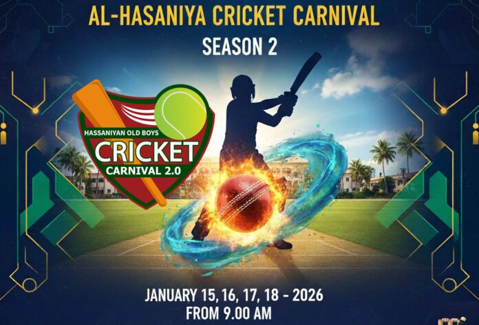 மக்கொனை அல்-ஹஸனியா மகா வித்தியாலய பழைய மாணவர் சங்கத்தினால் (OBA) இரண்டாவது முறையாகவும் மிக பிரம்மாண்டமாக ஏற்பாடு செய்யப்பட்டுள்ள “கிரிக்கெட் கார்னிவல் – சீசன் 2” (Cricket Carnival Season 2), எதிர்வரும் 2026 ஜனவரி மாதம் 15ஆம் திகதி முதல் 18ஆம் திகதி வரை நடைபெறவுள்ளது.