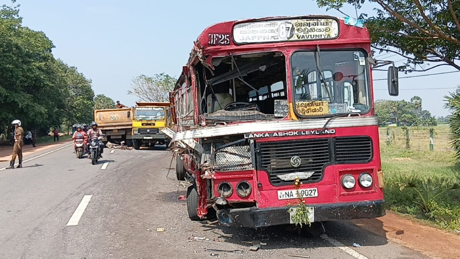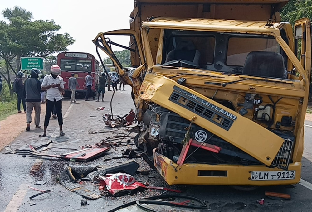 எதிரே யாழ்ப்பாணம் நோக்கி மணல் ஏற்றி வந்த டிப்பர் வாகனத்தின் சாரதிக்கு ஏற்பட்ட திடீர் நித்திரை கலக்கம் காரணமாக, கட்டுப்பாட்டை இழந்த டிப்பர் வாகனம் வேகமாக வந்த பேருந்துடன் நேருக்கு நேர் மோதியுள்ளது.