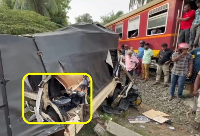 கொழும்பில் இருந்து யாழ் சென்று கொண்டிருந்த ரயிளுடனே குறித்த பட்டா வாகனம் விபத்தில் சிக்கியது.