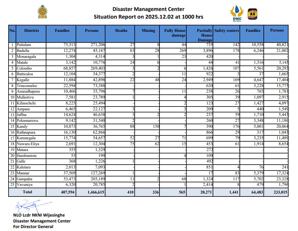 அந்த வகையில் கொழும்பு மாவட்டத்தில் 68,857 குடும்பங்களும், கம்பகா மாவட்டத்தில் 53,473 குடும்பங்களும், மன்னார் மாவட்டத்தில் 37,569 குடும்பங்களும், திருகோணமலை மாவட்டத்தில் 22,594 குடும்பங்களும் அதிகளவாக பாதிக்கப்பட்டுள்ளன.