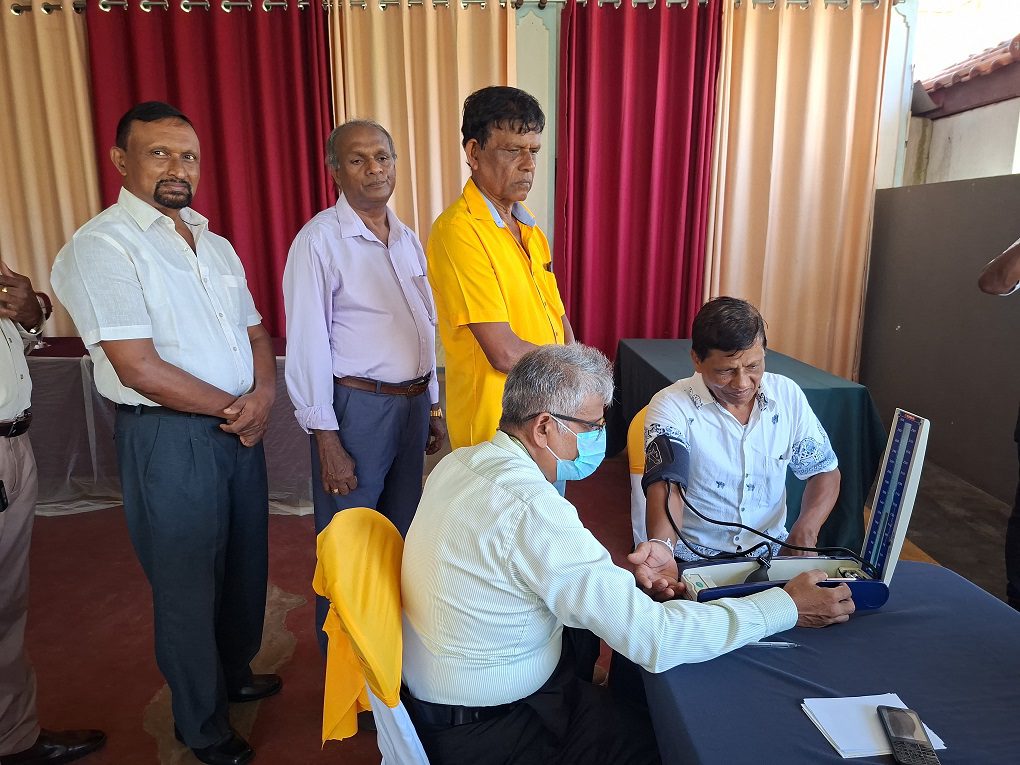 ஓய்வுபெற்ற அதிபர் ஒருவருக்கு ஓய்வுபெற்ற டி.ஐ.ஜி. உப்புல் சந்தன பாராட்டு விருதை வழங்கிய தருணத்தையும் மருத்துவ முகாமின் ஒரு காட்சியையும் புகைப்படங்கள் காட்டுகின்றன.