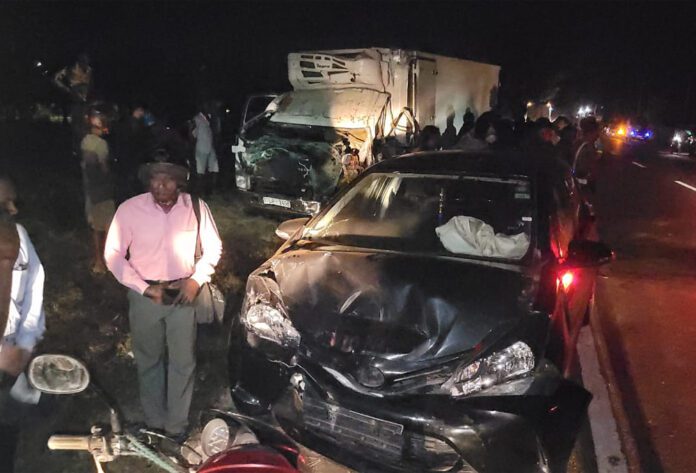 கிளிநொச்சிப் பகுதியில் இருந்து யாழ். நோக்கி வருகை தந்த காரும், யாழில் இருந்து கிளிநொச்சி நோக்கிப் பயணித்த டிப்பர், கூலர் வாகனம் மற்றும் மோட்டார் சைக்கிள் ஆகியனவும் ஒன்றோடு ஒன்று மோதியதில் இவ் விபத்து சம்பவித்துள்ளது.